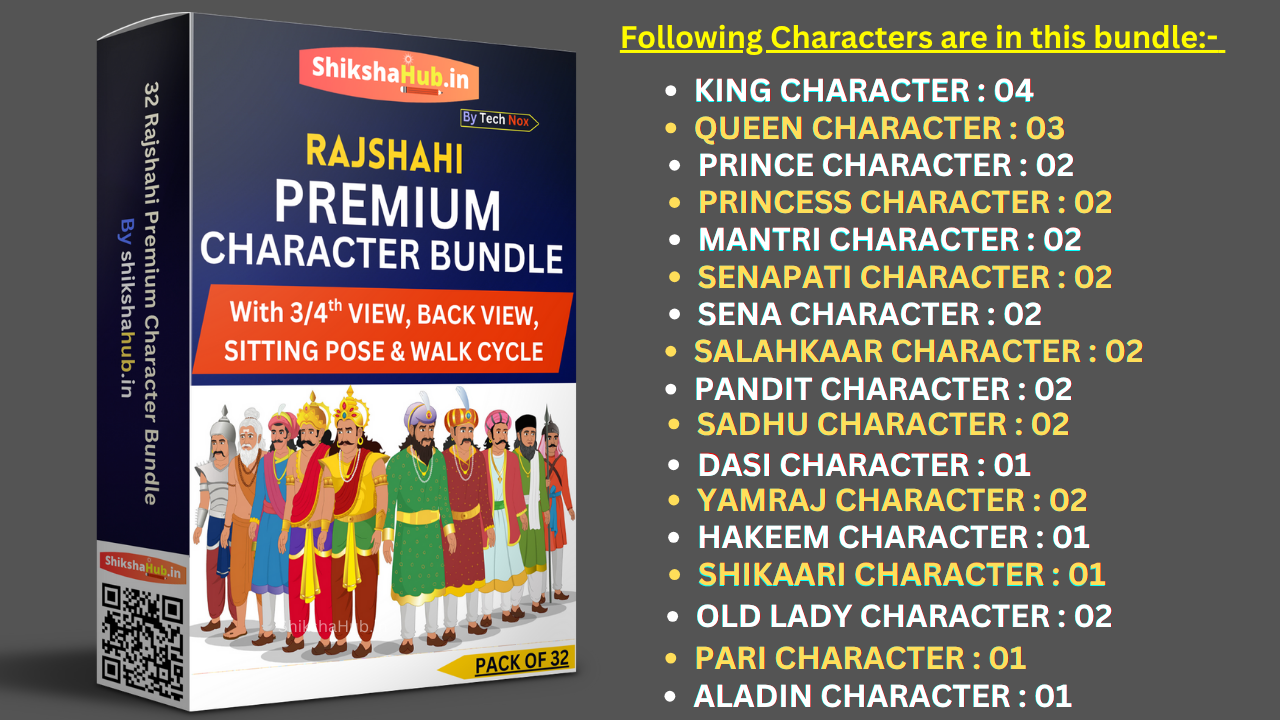 Vector Character : 32 (with Front 3/4th View, Back View, Sitting Pose, Front Walking, Back Walking, Lip Sync and Eye Blinking)